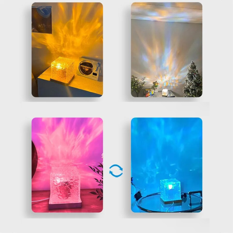 • Efeito de Ondulação de Água Dinâmico: A estrutura única e o modo rotativo do Cubo Luminoso criam um efeito visual encantador, adicionando uma sensação de movimento e tranquilidade ao seu espaço.