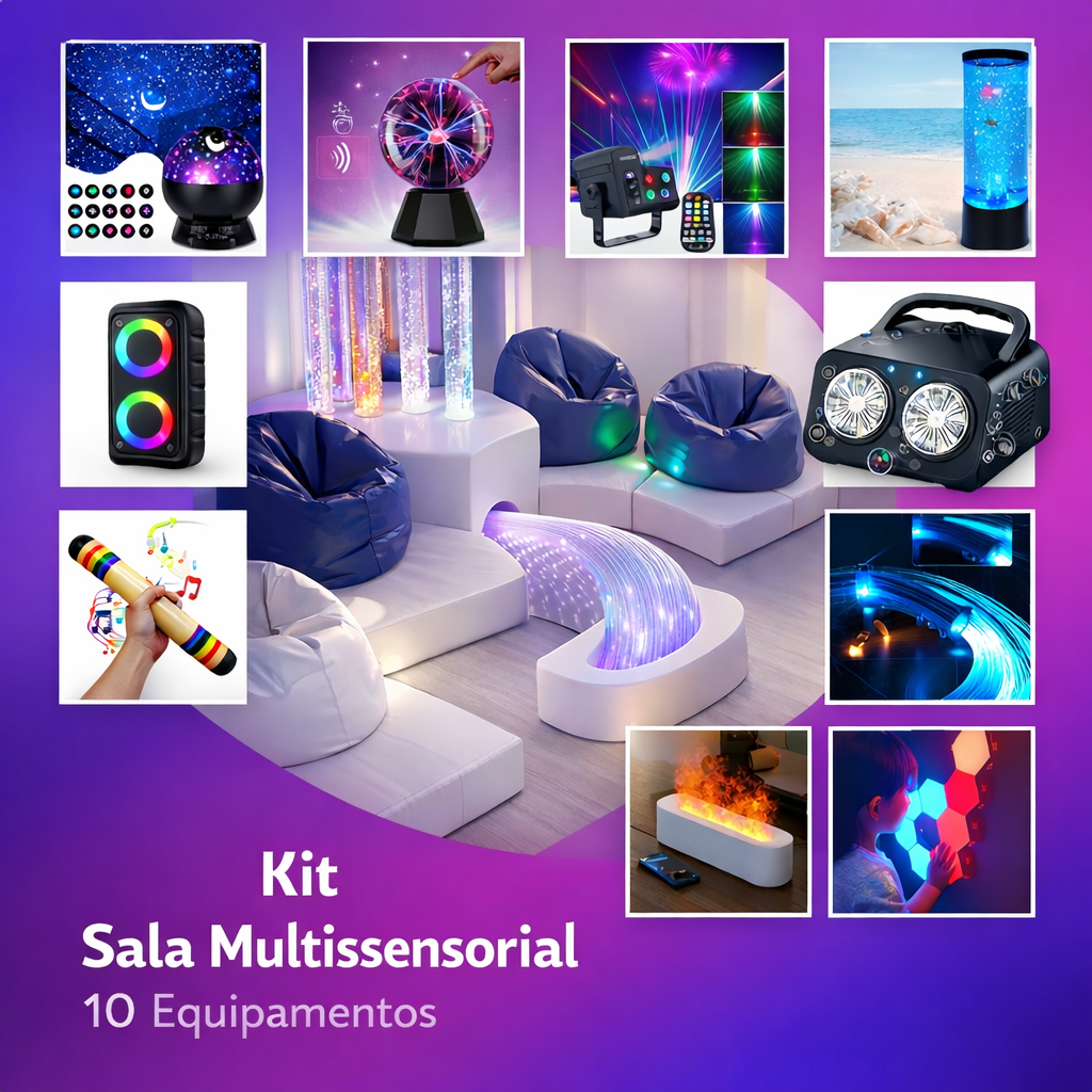 Os equipamentos inclusos no kit são suficientes para iniciar imediatamente o atendimento e utilização de uma sala multissensorial, promovendo resultados tangíveis em termos de bem-estar físico, emocional e cognitivo. Eles trabalham em sinergia para estimular e regular todos os sentidos primários, incluindo visão, audição, tato, olfato e paladar, oferecendo uma abordagem holística e integrada à terapia sensorial.